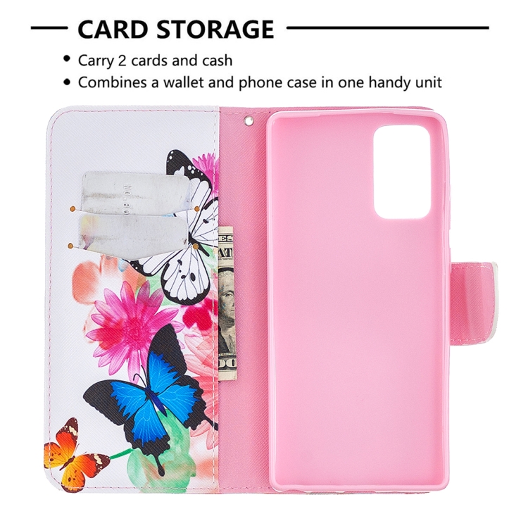 Funda de Cuero Abatible Horizontal Samsung Galaxy Note 20 con Soporte, Ranuras para Tarjetas y Billetera (Mariposas)