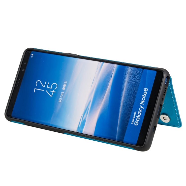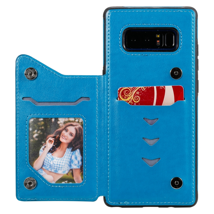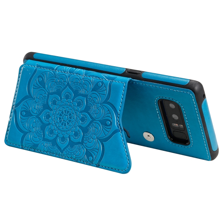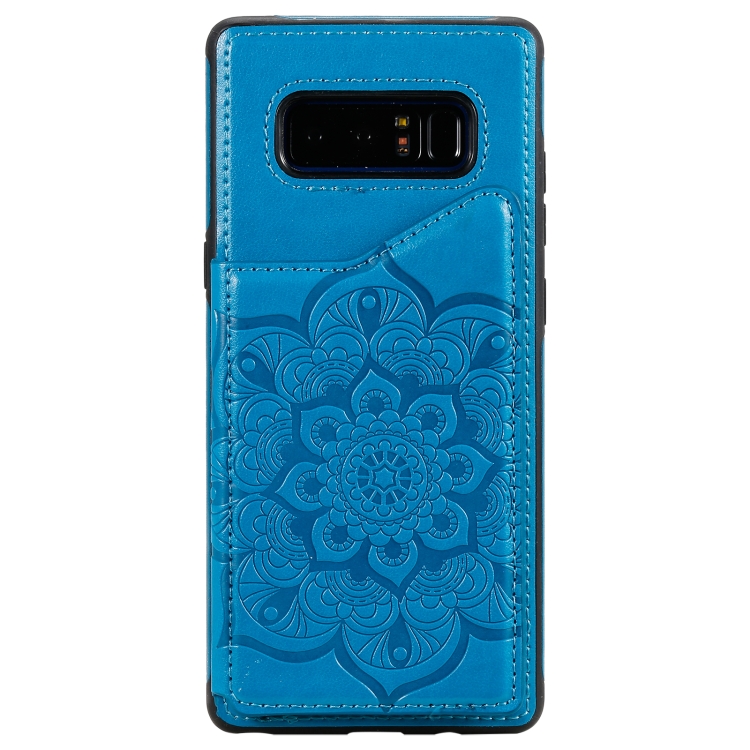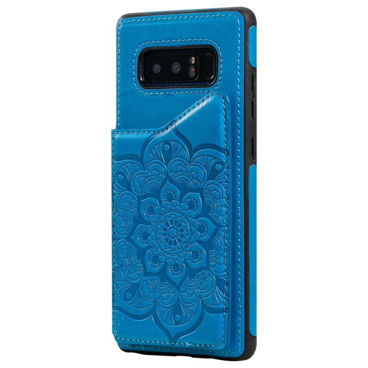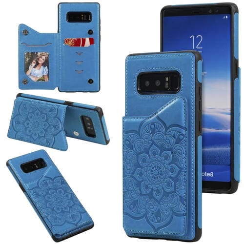 Estuche Protector Samsung Galaxy Note 8 Patrón Flores Soporte Ranuras Tarjetas Marco Fotos (Azul)