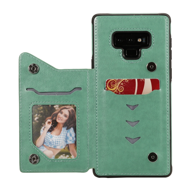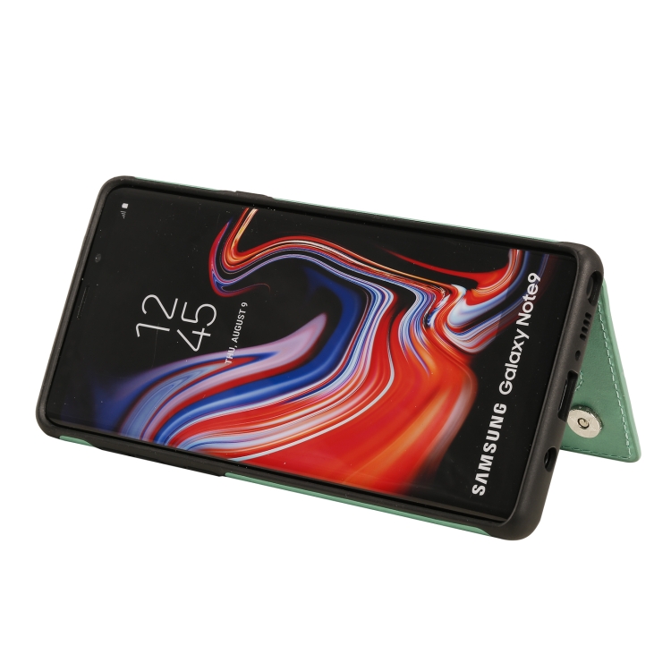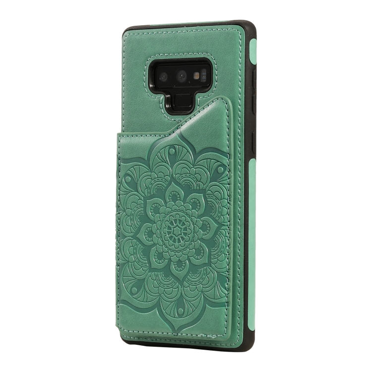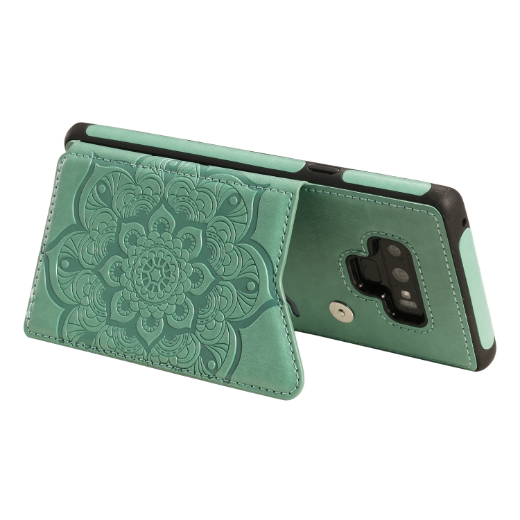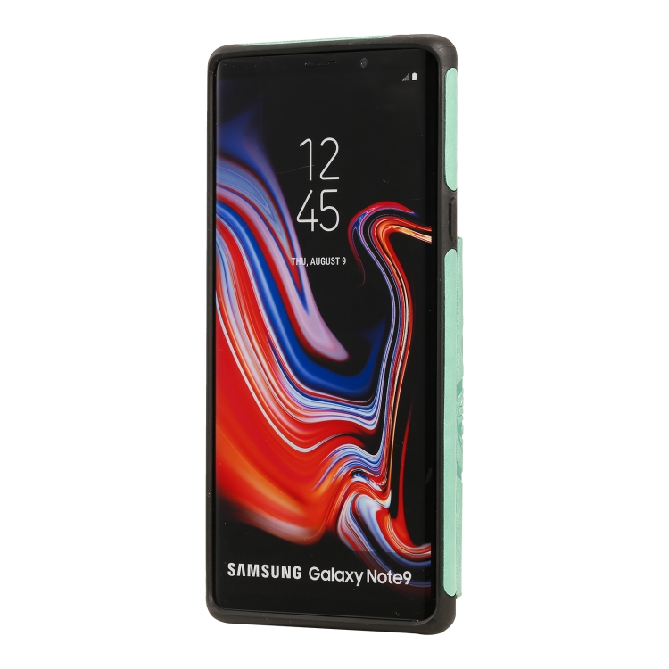 Estuche protector Samsung Galaxy Note 9 Flor patrón relieve a prueba de golpes con soporte y ranuras para tarjetas (Verde)
