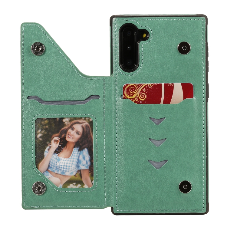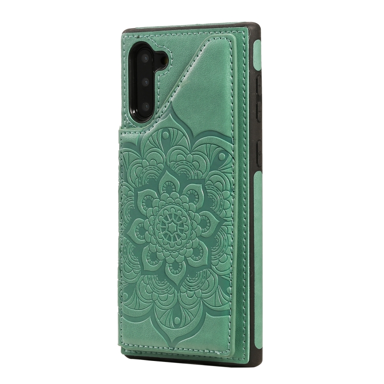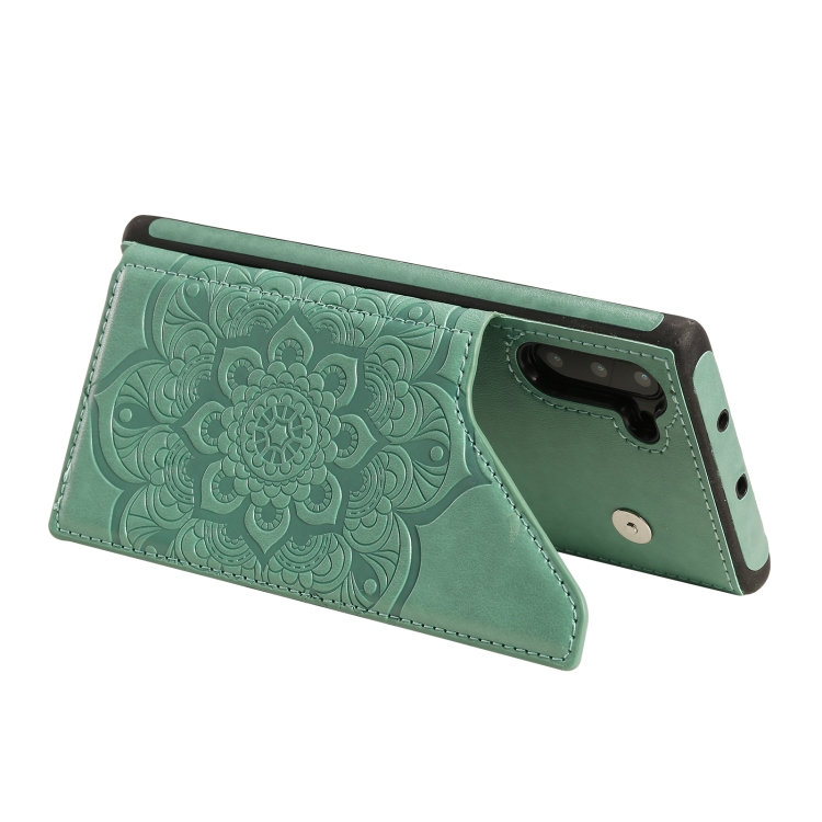 Estuche protector Samsung Galaxy Note10 Patrón Flor Grabado En Relieve a Prueba de Golpes con Soporte y Ranuras para Tarjetas (Verde)