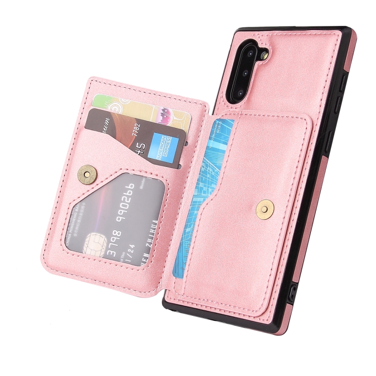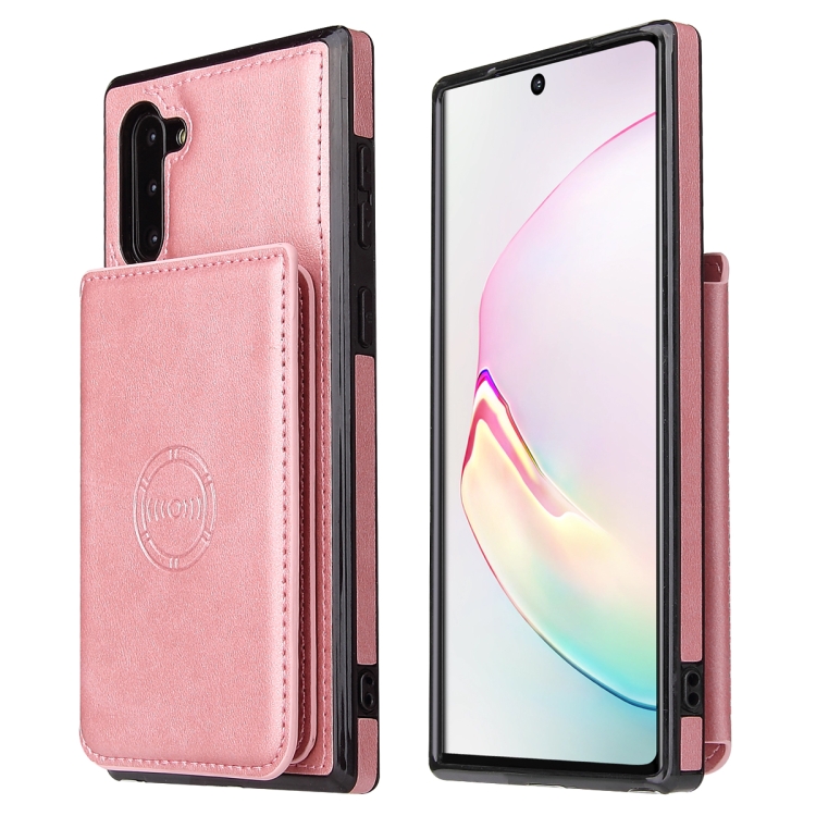 Funda para Samsung Galaxy Note10 Textura de Calfe Tarjeta Magnética Bolsa de Pus de PU (Oro Rosa)