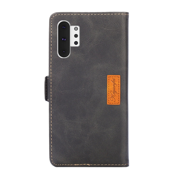 Estuche de Cuero Samsung Galaxy Note10 + Textura Retro Contraste Hebilla Lateral Tapa Horizontal Soporte Ranuras para Tarjetas Billetera (Negro)