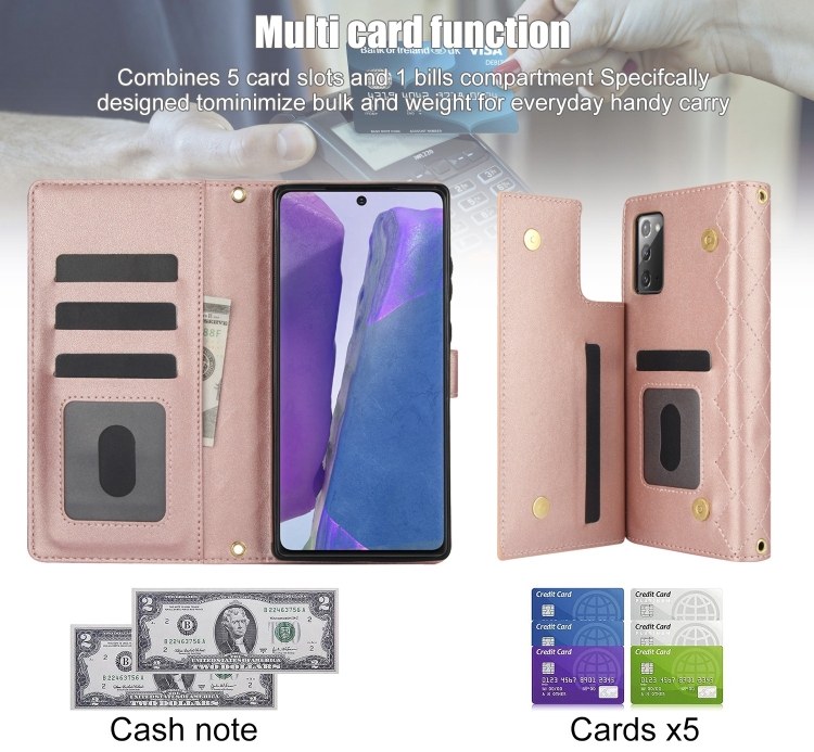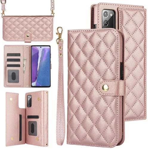 Funda Cruzada de Cuero Samsung Galaxy Note20 Rómbica Multifunción (Oro Rosa)