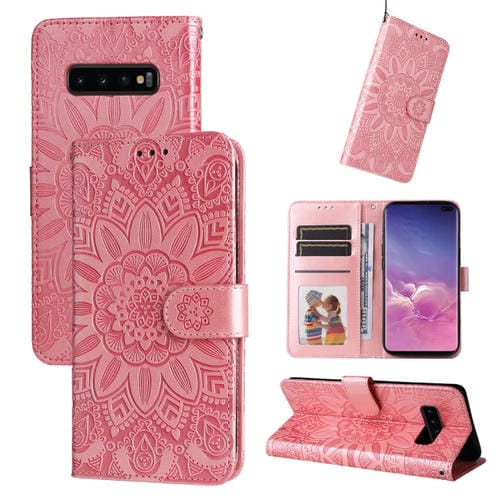 Estuche para Teléfono Samsung Galaxy S10 Cuero Estampado Girasol En Relieve (Rosa)