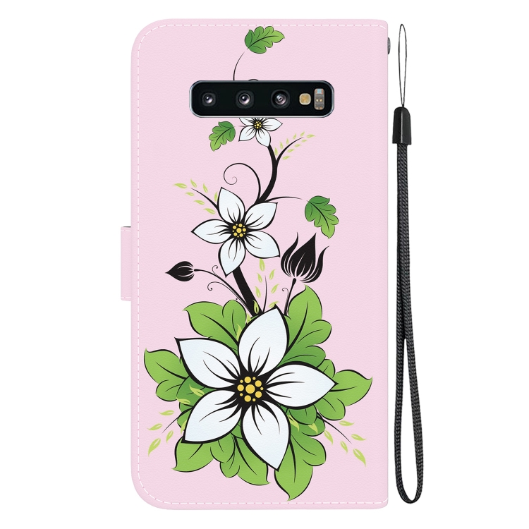 Funda de Cuero para Samsung Galaxy S10 con Dibujo Coloreado y Textura de Cristal (Lirio)