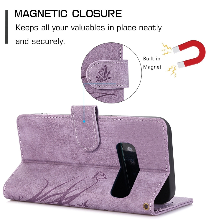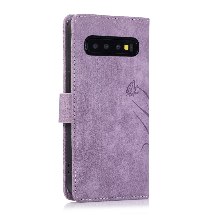 Funda para Samsung Galaxy S10 Cuero con Relieve Mariposa Orquídea (Púrpura)