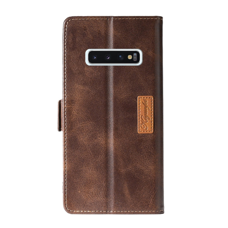 Estuche de Cuero Samsung Galaxy S10 Textura Retro Hebilla Lateral con Soporte y Ranuras para Tarjetas (Marrón)