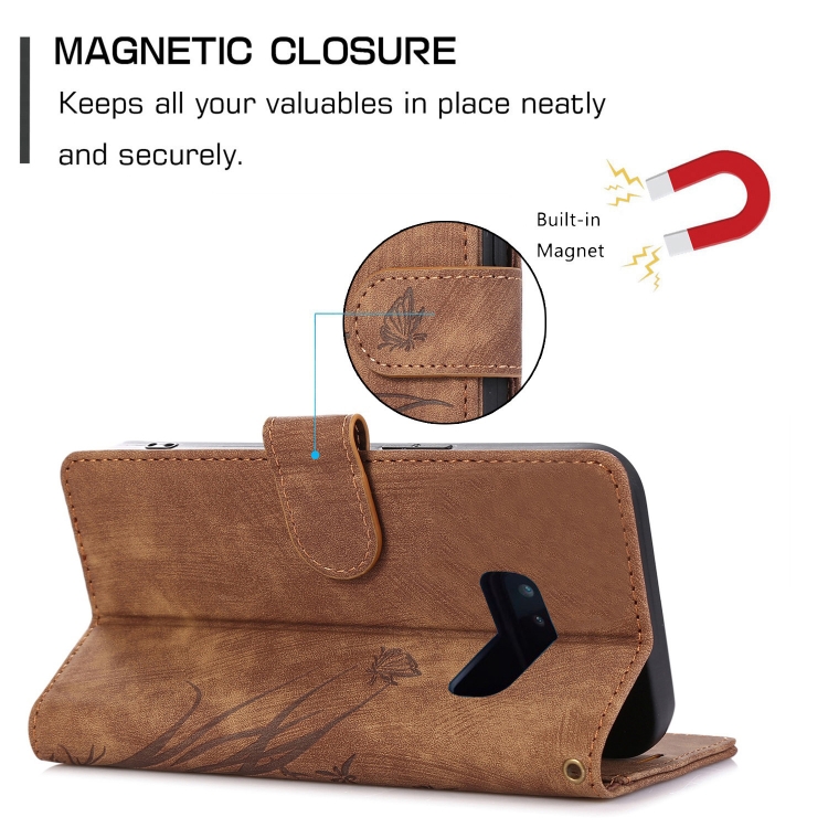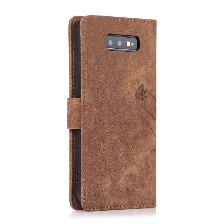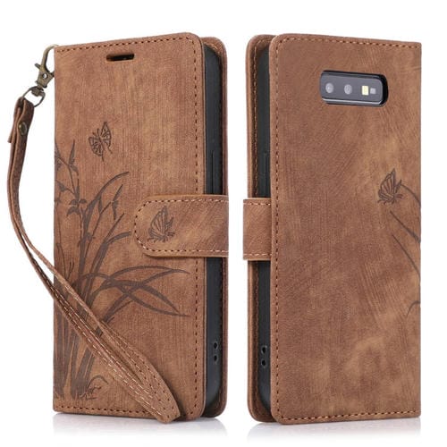 Funda para Teléfono Samsung Galaxy S10E Cuero Relieve Mariposa Orquídea (Marrón)