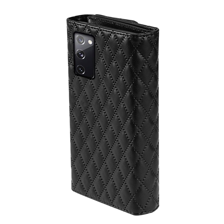 Estuche para teléfono Samsung Galaxy S20 Cuero Rómbico con Billetera MultiTarjeta y Cremallera (Negro)