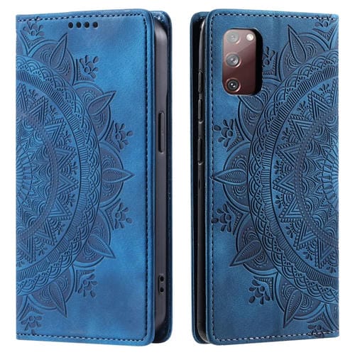 Estuche para teléfono Samsung Galaxy S20 FE 4G/5G cuero magnético relieve tótem (Azul)
