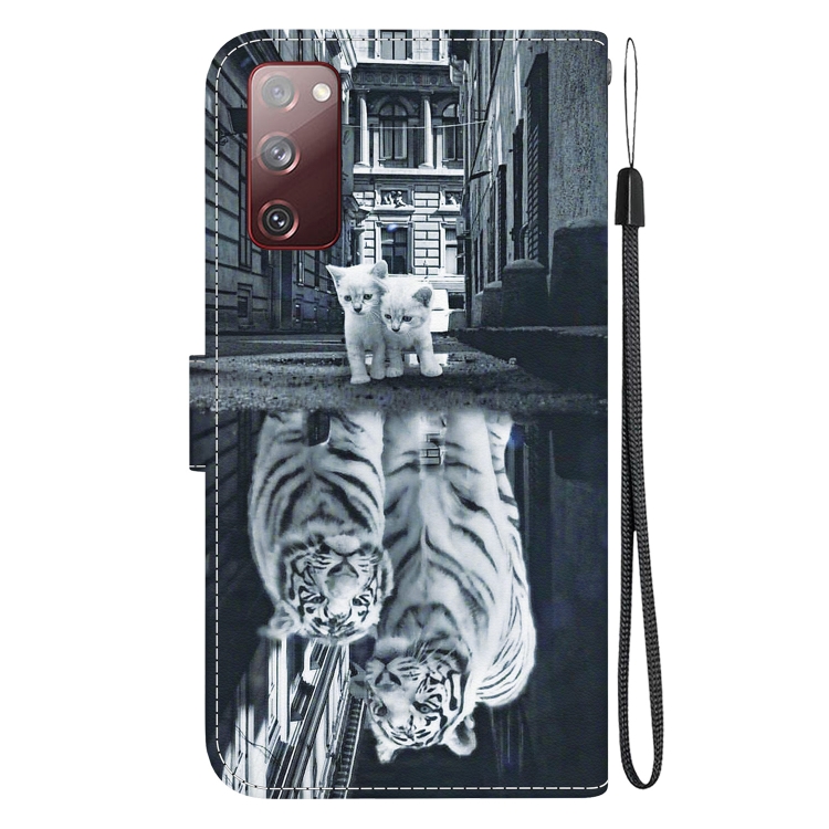 Funda para teléfono Samsung Galaxy S20 FE 5G Cuero Dibujo Coloreado Textura Cristal (Reflejo de Tigre Gato)
