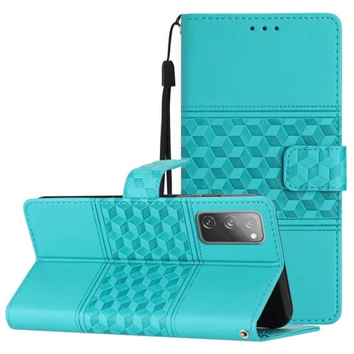 Estuche para Teléfono Samsung Galaxy S20 FE Cuero Sensación de Piel En Relieve con Cordón (Azul)