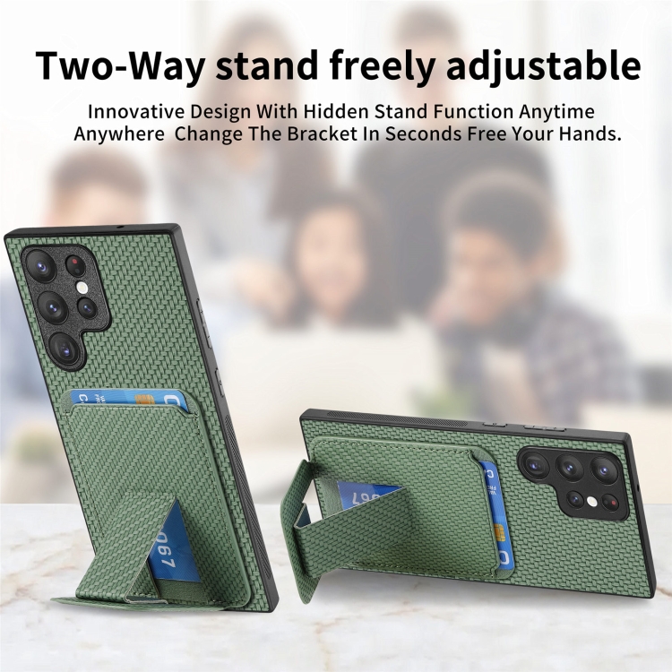 Funda para Teléfono Samsung Galaxy S20 con Soporte Plegable y Bolsa para Tarjetas Fibra de Carbono (Verde)