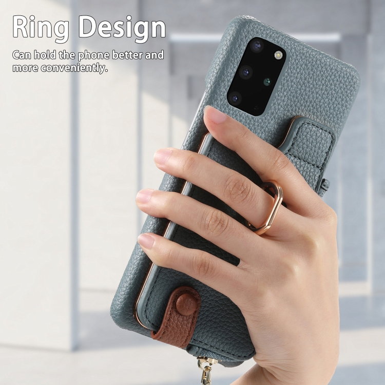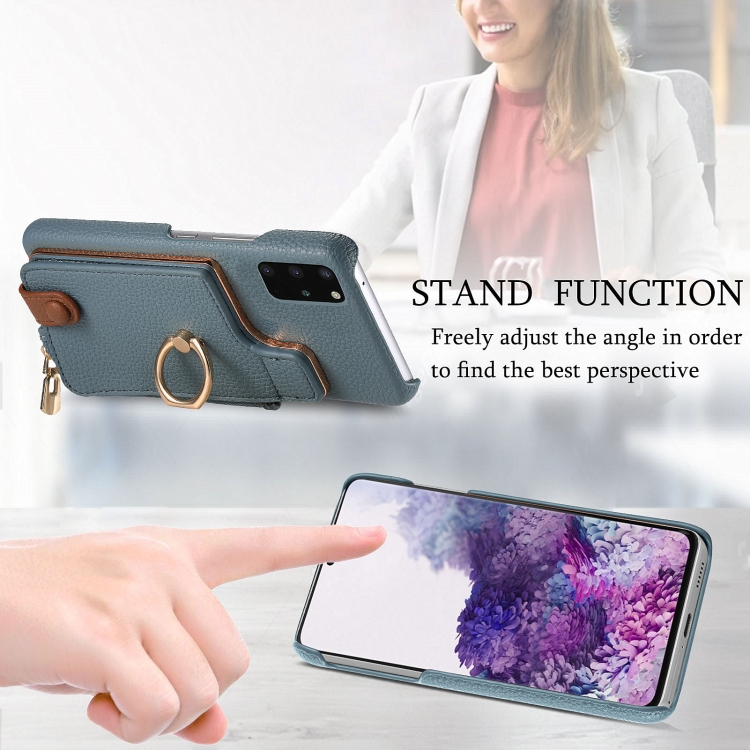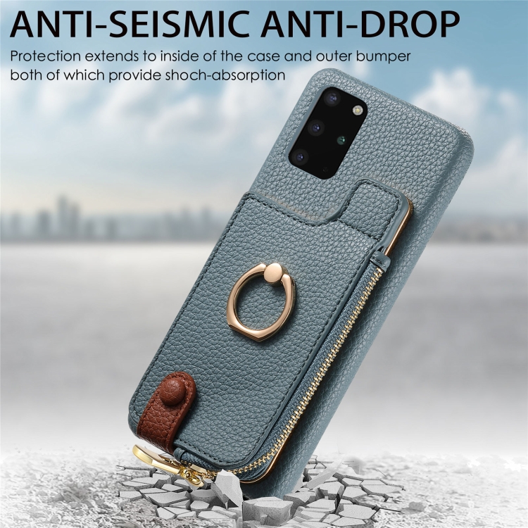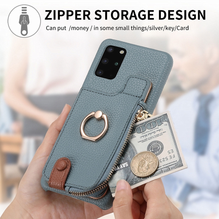 Funda Trasera para Samsung Galaxy S20 con Billetera, Cremallera y Anillo de Cuero Litchi (Azul)