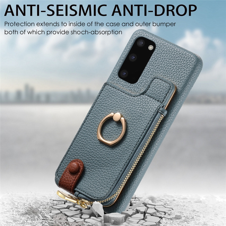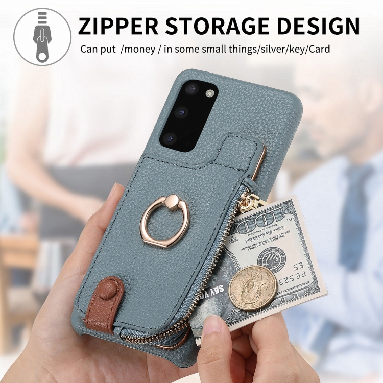 Funda para Samsung Galaxy S20 Litchi Leather Oil Edge Ring Zipper Wallet Back (Azul)