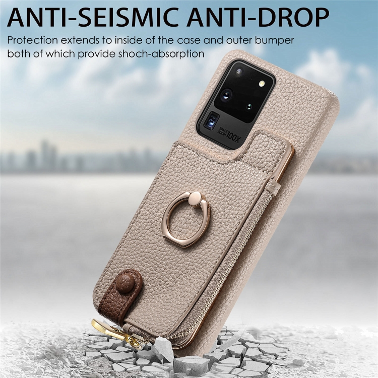Funda para Samsung Galaxy S20 Ultra Litchi Leather Oil Edge Ring Zipper Wallet Back (Blanco)
