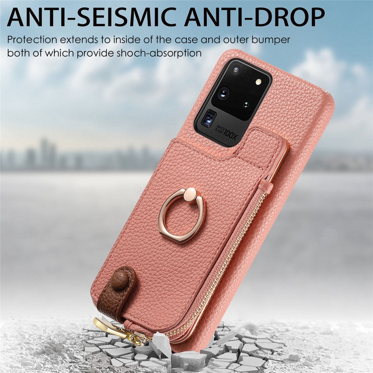 Funda para Samsung Galaxy S20 Ultra Litchi Leather Oil Edge Ring Zipper Wallet Back (Rosa)