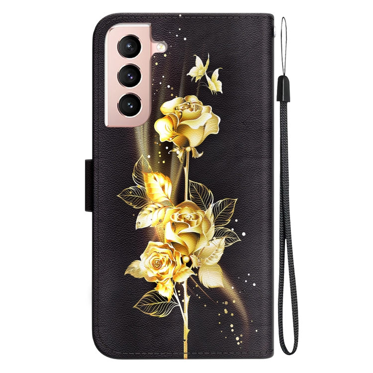 Funda de cuero Samsung Galaxy S21 5G con dibujo coloreado y textura de cristal (Mariposa Dorada Rosa)