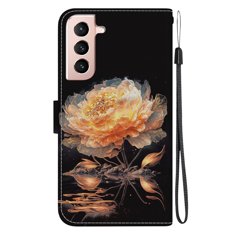 Funda de Cuero Samsung Galaxy S21 5G con Dibujo Coloreado y Textura de Cristal (Peonía Dorada)