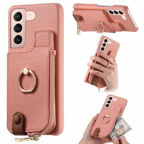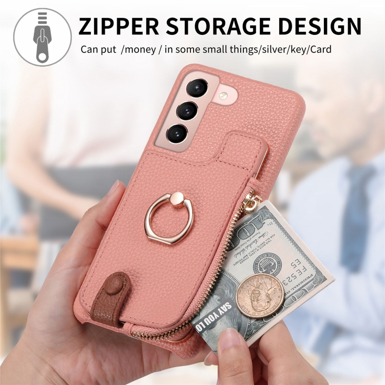 Funda para Samsung Galaxy S21 5G Litchi Leather Oil Edge Ring Zipper Wallet Back (Rosa)