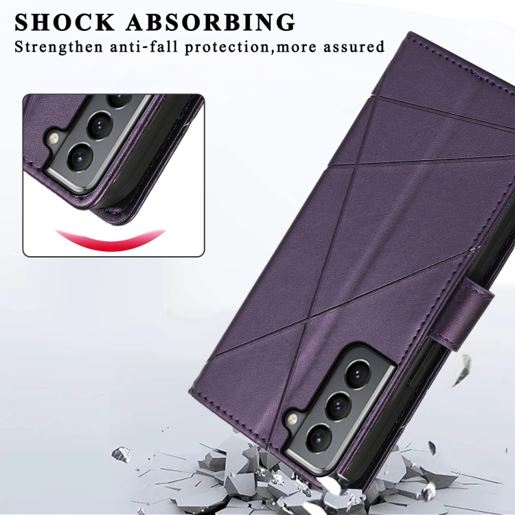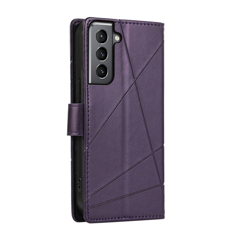 Funda para Teléfono Samsung Galaxy S21 5G PU con Línea En Relieve Textura Cuero Genuino (Púrpura)
