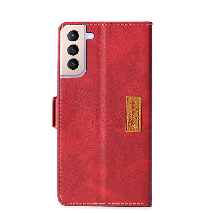 Estuche de Cuero para Samsung Galaxy S21 5G Textura Retro Hebilla Lateral Tapa Horizontal Soporte Ranuras Tarjetas Billetera (Rojo)