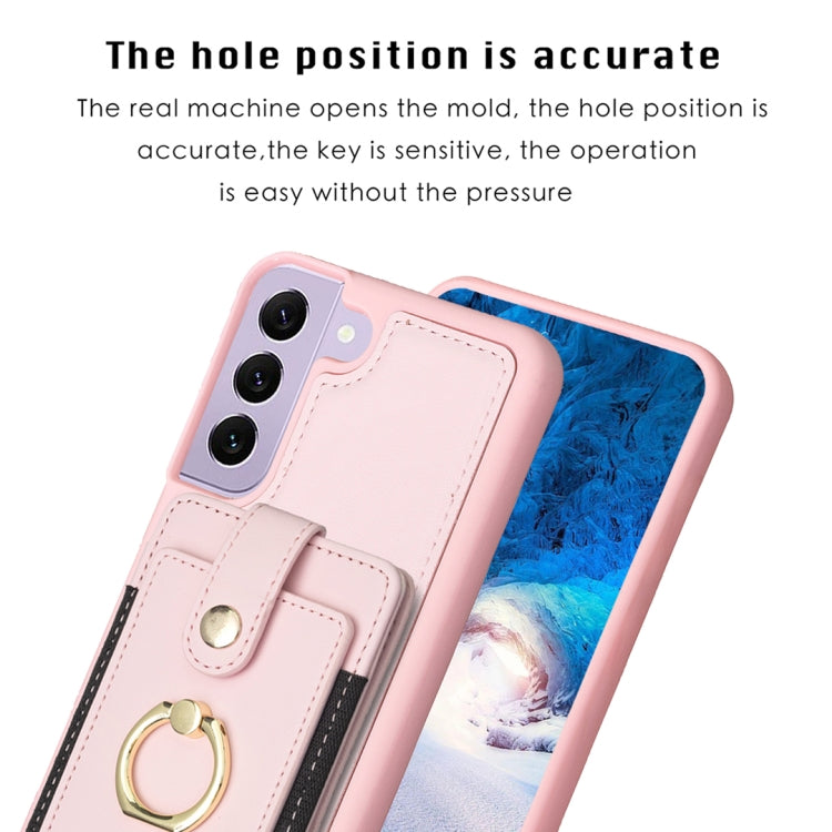 Para Samsung Galaxy S21 FE 5G BF27 Anillo de metal Tarjeta Bolsa Titular Caja del teléfono (Rosa)