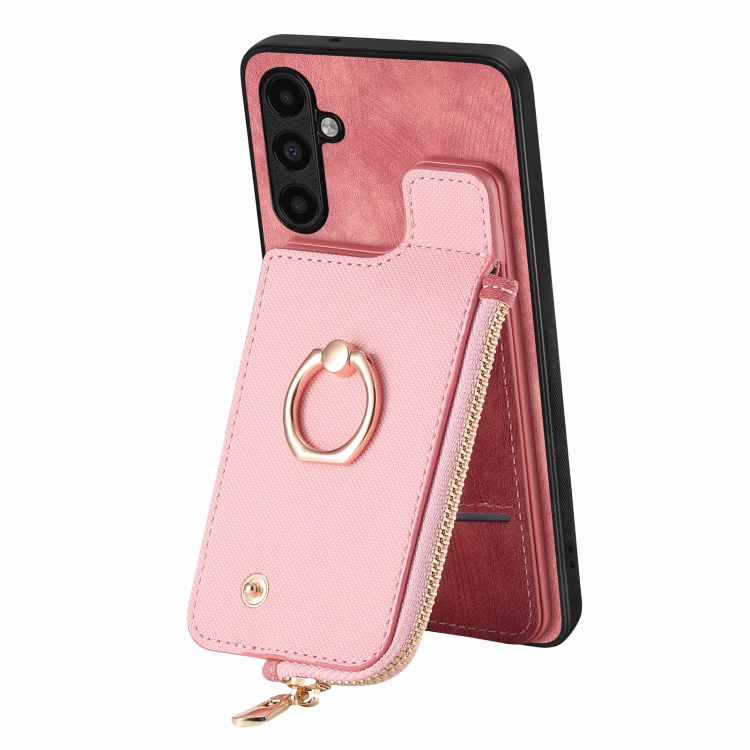 Funda para Teléfono Samsung Galaxy S21 FE 5G con Anillo de Cuero Cruzado Cremallera Vertical y Billetera Trasera (Rosa)
