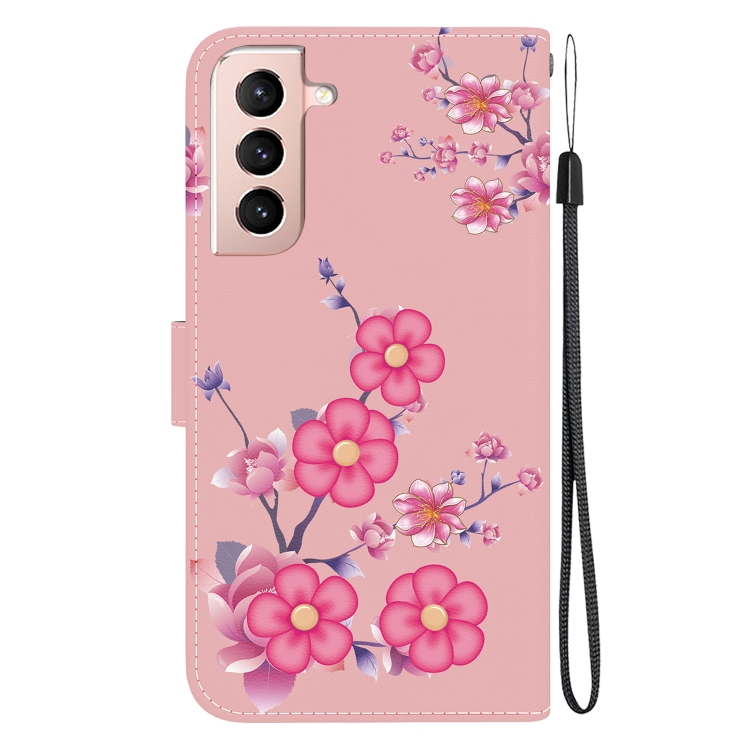 Funda para Teléfono Samsung Galaxy S21 FE 5G Cuero Dibujo Coloreado Textura de Cristal (Flores de Cerezo)