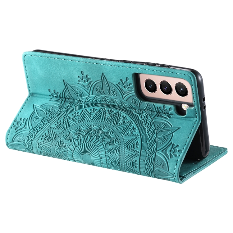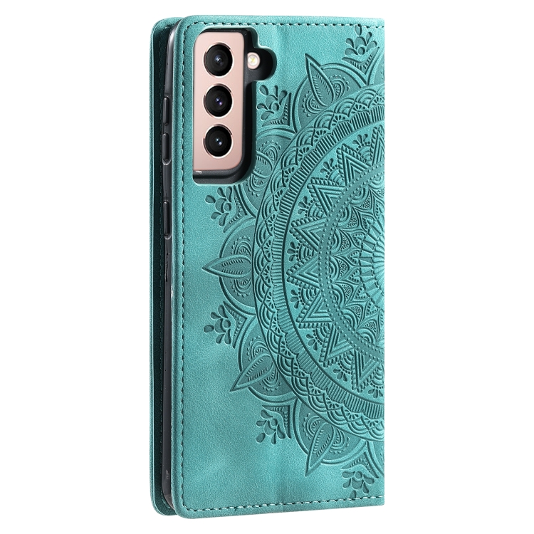 Funda para Samsung Galaxy S21 FE 5G Totem Cuero Magnética En Relieve (Verde)