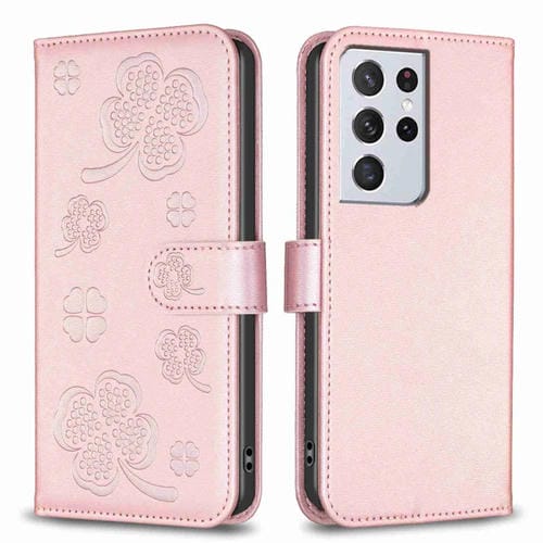 Funda para Teléfono Samsung Galaxy S21 Ultra 5G Cuero con Relieve de Cuatro Hojas (Rosa)