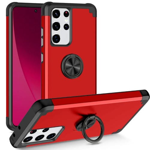 Funda Magnética Samsung Galaxy S21 Ultra 5G L2 con Soporte de Anillo Giratorio (Rojo)