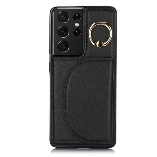 Funda para Teléfono Samsung Galaxy S21 Ultra 5G Ym007 con Soporte para Anillo y Tarjeta (Negro)