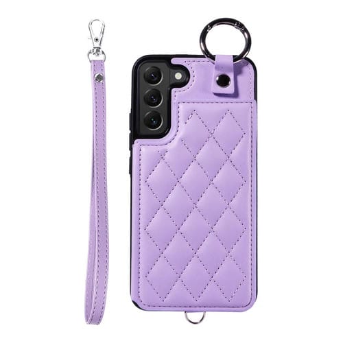 Estuche para Teléfono Samsung Galaxy S22 + 5G con Bolsa para Tarjetas Textura Rómbica y Cordón Corto (Púrpura)