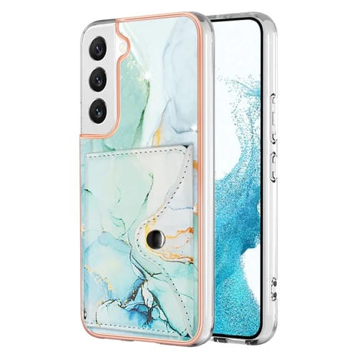 Estuche para teléfono Samsung Galaxy S22 + 5G con ranura para tarjeta IMD patrón de mármol (Verde)