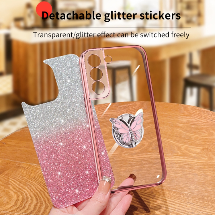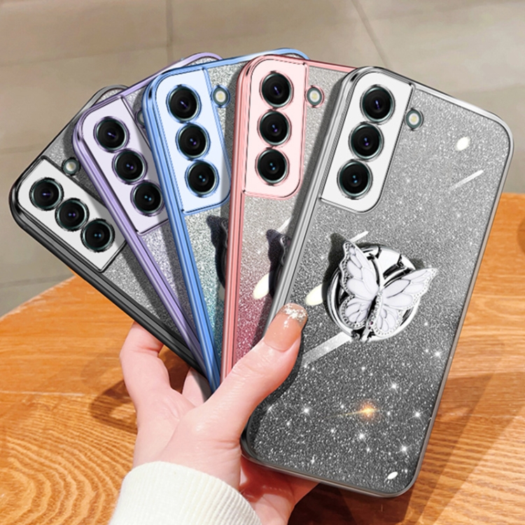 Estuche para teléfono Samsung Galaxy S22 + 5G TPU con soporte de mariposa y brillo degradado (Negro)