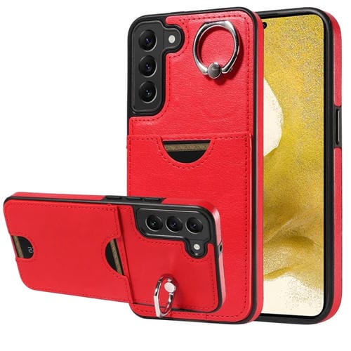 Funda para Teléfono Samsung Galaxy S22 + 5G con Soporte para Anillo y Ranura para Tarjeta (Rojo)