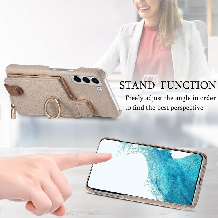 Funda para Teléfono Samsung Galaxy S22 + 5G Litchi Leather Oil Edge Ring Zipper Wallet (Blanco)