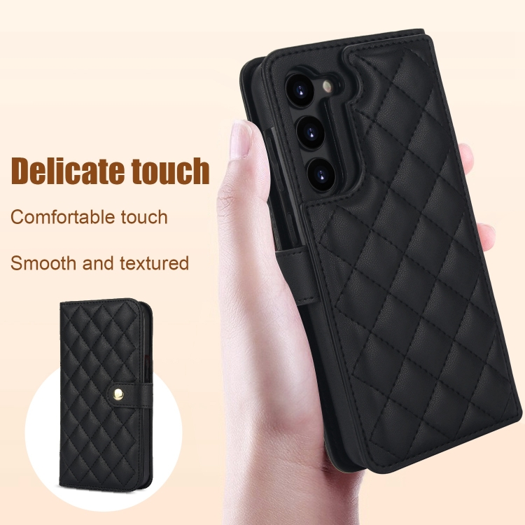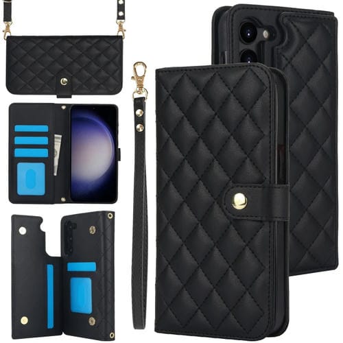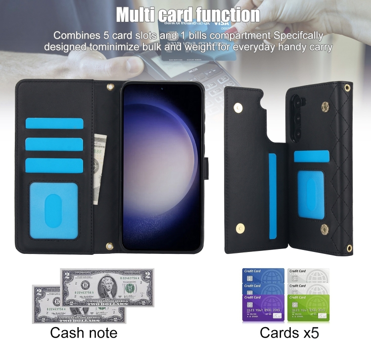 Estuche para Teléfono Samsung Galaxy S23 5G Crossbody Cuero Rómbico Multifunción (Negro)