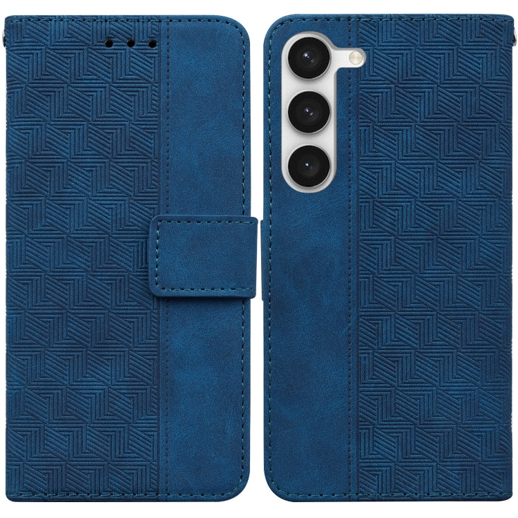 Estuche de Teléfono Samsung Galaxy S23+ 5G Cuero con Tapa En Relieve Geométrico (Azul)