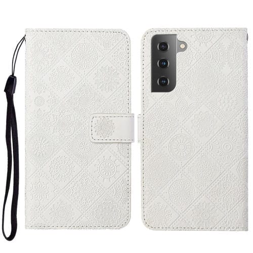 Estuche para Teléfono Samsung Galaxy S23 5G Cuero Patrón En Relieve Estilo Étnico (Blanco)