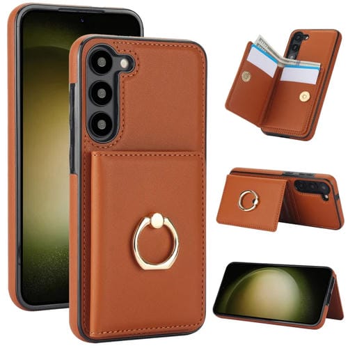 Estuche para teléfono Samsung Galaxy S23 5G Rfid Tarjeta Antirrobo con Soporte para Anillo (Marrón)