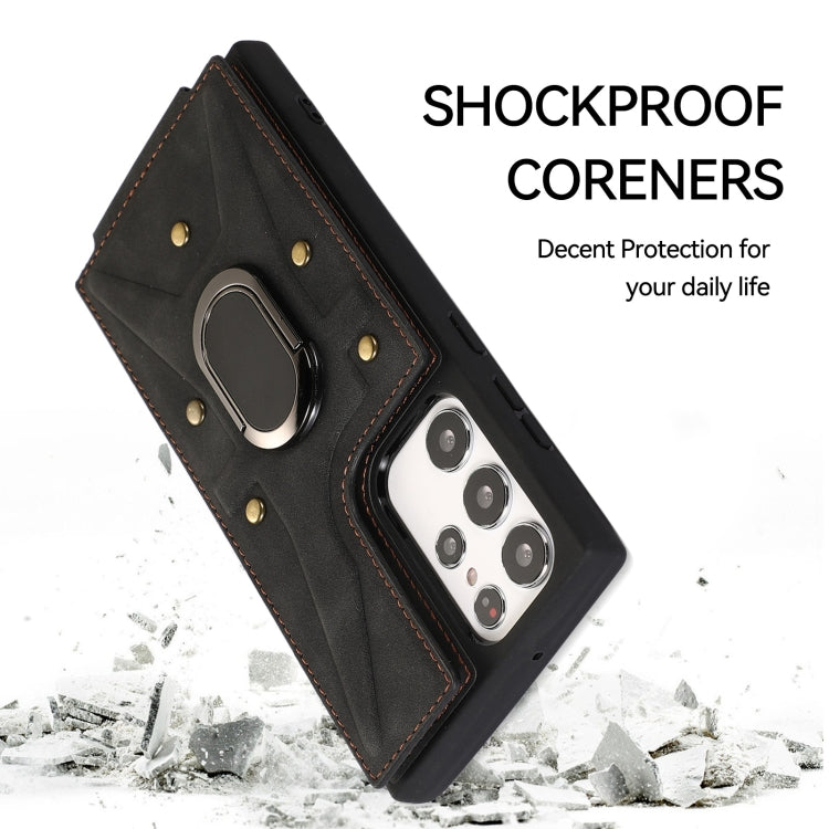 Para Samsung Galaxy S23 Ultra 5G Armor Ring Wallet Back Cover Phone Case (Negro)