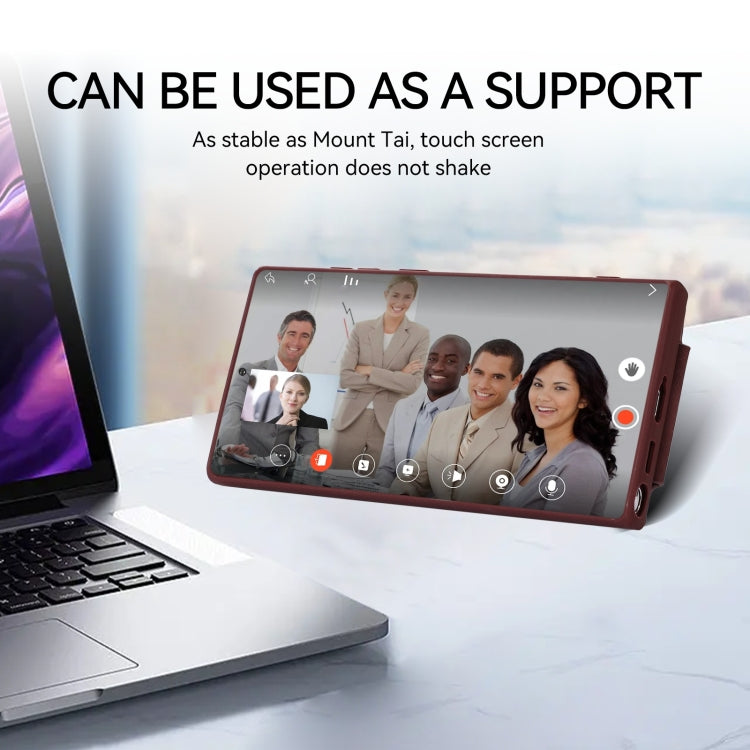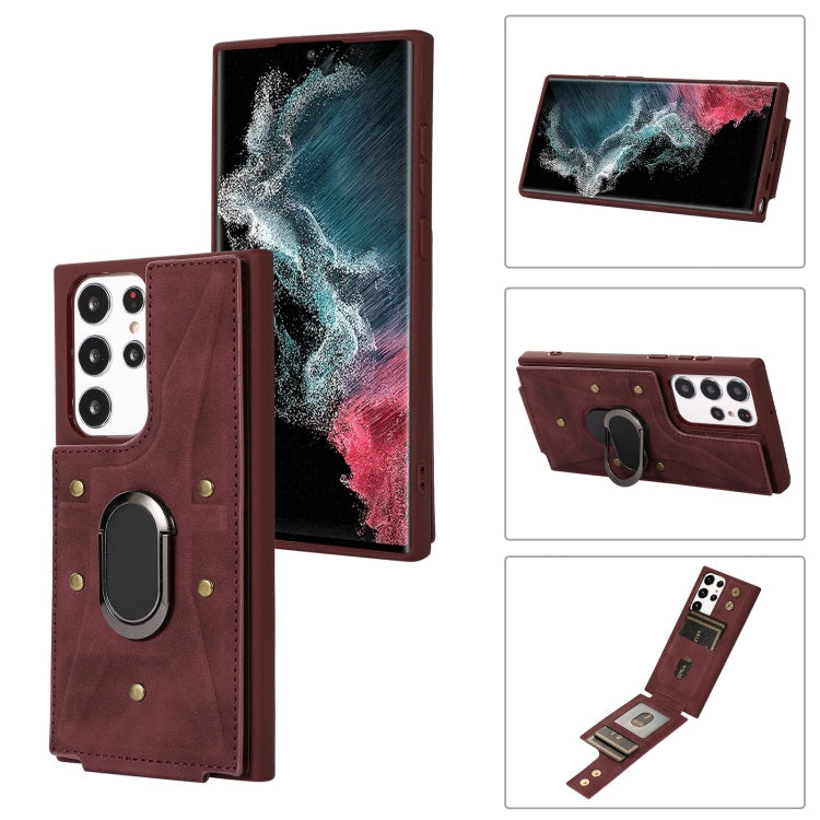 Para Samsung Galaxy S23 Ultra 5G Armor Ring Wallet Funda trasera para teléfono (rojo vino)
