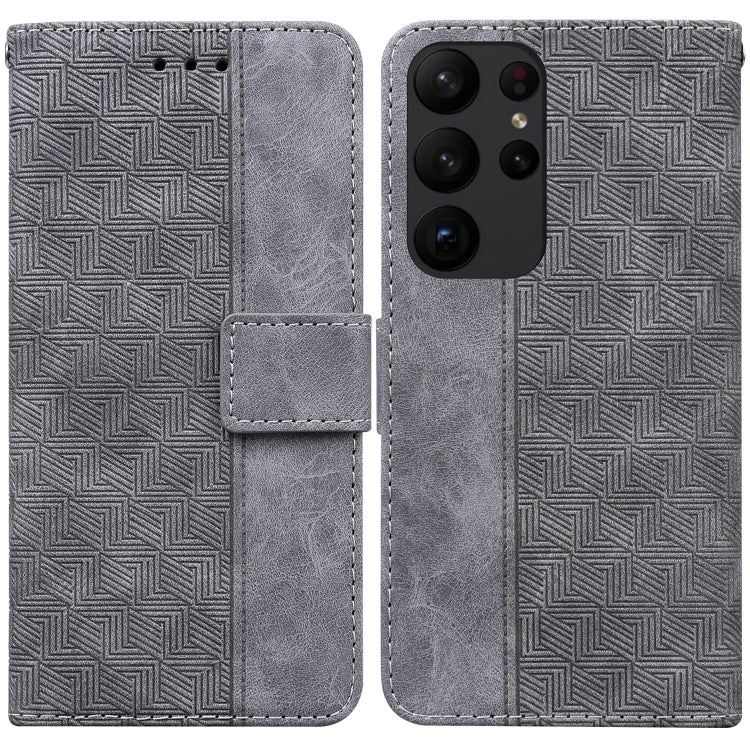 Estuche de Teléfono Samsung Galaxy S23 Ultra 5G Cuero Tapa En Relieve Geométrico (Gris)