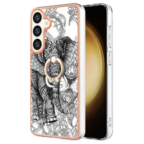 Estuche para Teléfono Samsung Galaxy S24 5G Imd Doble Cara Galvanoplastia Soporte para Anillo (Totem Elephant)