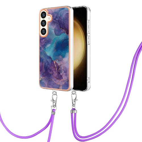 Estuche para Teléfono Samsung Galaxy S24 5G Imd Doble Cara Mármol Galvanizado con Cordón (Púrpura)