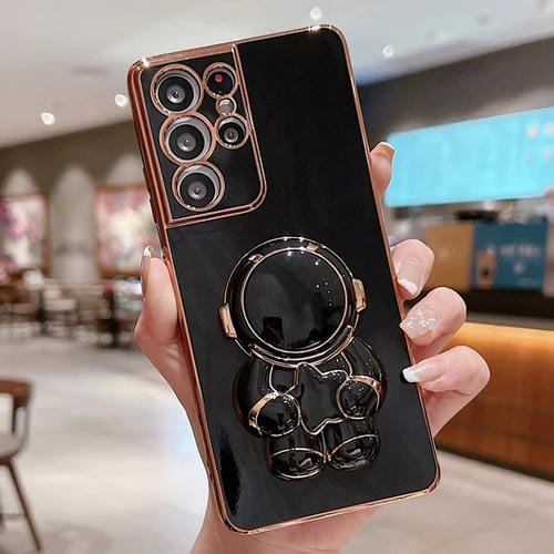 Estuche para teléfono Samsung Galaxy S24 Ultra 5G Embrace Stars con Soporte para Astronauta Galvanizado (Negro)
