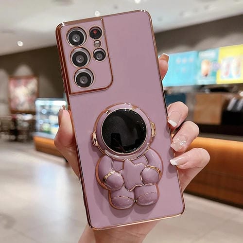 Estuche para Teléfono Samsung Galaxy S24 Ultra 5G Embrace Stars con Soporte Astronauta Galvanizado (Púrpura)