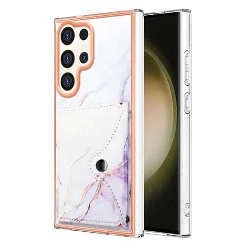 Estuche para teléfono Samsung Galaxy S24 Ultra 5G con ranura para tarjeta IMD patrón Mármol (Blanco y Morado)